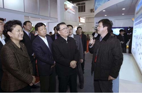 下午5時(shí)許,李長(zhǎng)春走進(jìn)展廳,饒有興致地參觀了直播衛(wèi)星“戶戶通”工程、中國(guó)3D電視試驗(yàn)頻道展示,了解國(guó)家新媒體集成播控總平臺(tái)建設(shè)、中國(guó)移動(dòng)多媒體廣播(CMMB)交互業(yè)務(wù)技術(shù)應(yīng)用情況,觀看了面向三網(wǎng)融合的互聯(lián)互通業(yè)務(wù)平臺(tái)、基于下一代廣播電視網(wǎng)的網(wǎng)絡(luò)解決方案、視頻云計(jì)算和智能云電視等新成果,對(duì)廣播電視系統(tǒng)近年來加快構(gòu)建廣播電視公共服務(wù)體系、推進(jìn)科技創(chuàng)新、建設(shè)現(xiàn)代傳播體系取得的成績(jī)給予充分肯定。在浪潮集團(tuán)、中國(guó)有線公司等國(guó)內(nèi)技術(shù)設(shè)備企業(yè)展臺(tái),李長(zhǎng)春詳細(xì)了解企業(yè)開發(fā)生產(chǎn)具有核心技術(shù)和自主知識(shí)產(chǎn)權(quán)的廣播電視設(shè)備情況,勉勵(lì)企業(yè)通過原始創(chuàng)新、集成創(chuàng)新、引進(jìn)消化吸收再創(chuàng)新,加快自主創(chuàng)新步伐,積極參與廣播電視數(shù)字化、網(wǎng)絡(luò)化改造,為推進(jìn)三網(wǎng)融合和國(guó)家新媒體集成播控平臺(tái)建設(shè)提供技術(shù)支撐。