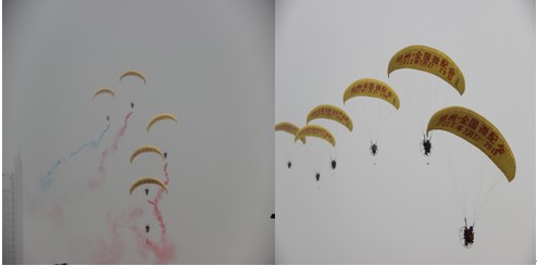 所有參展商、參觀、采購在拍照微配會動力傘
