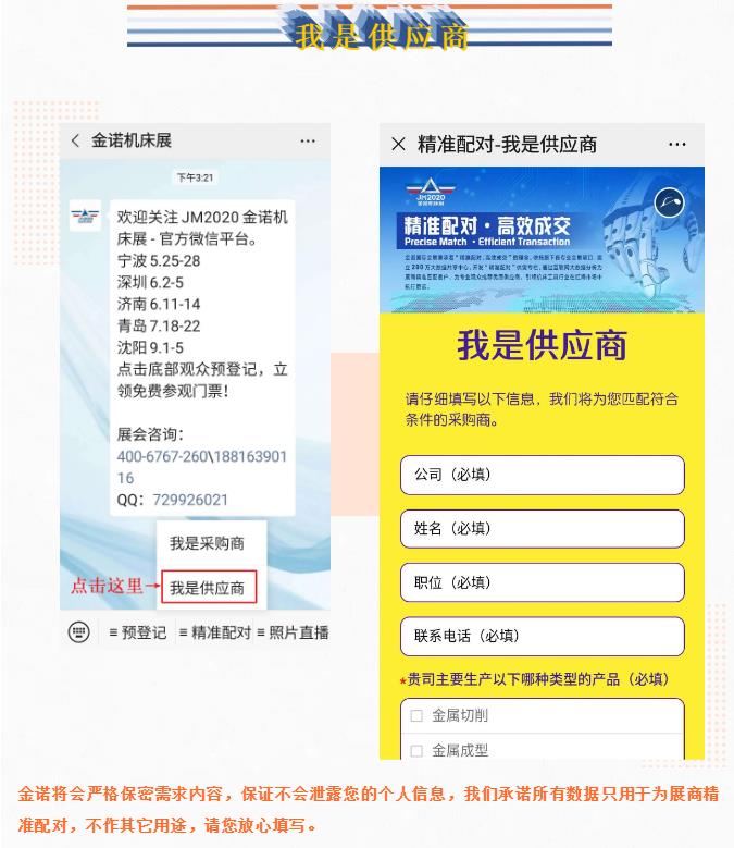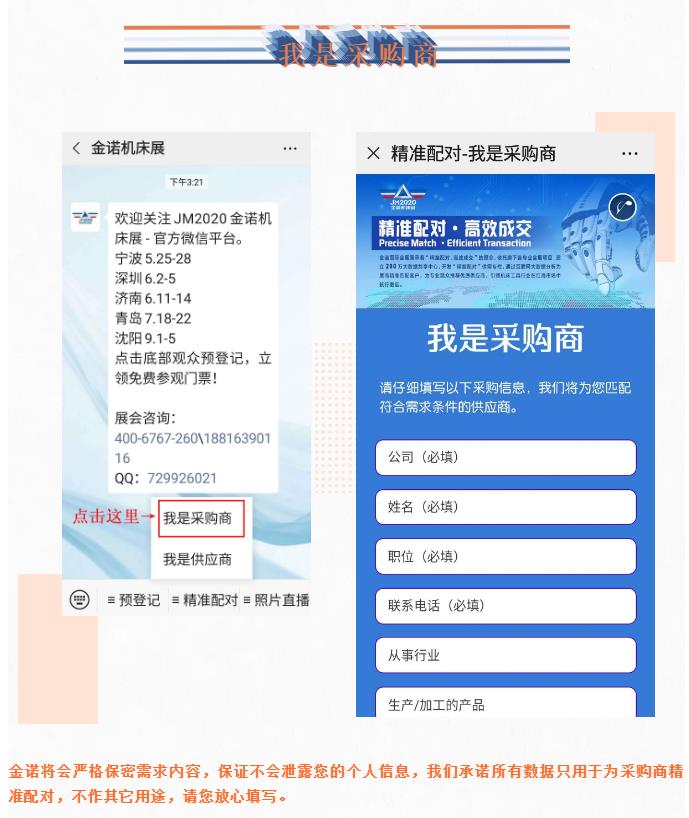 考慮到突發(fā)的疫情可能為您的觀展或采購(gòu)造成不便,為了給您帶來(lái)最舒適的采購(gòu)體驗(yàn),節(jié)省您的采購(gòu)時(shí)間,找到更適合的產(chǎn)品,金諾機(jī)床展托旗下各專業(yè)會(huì)展項(xiàng)目,建立200萬(wàn)大數(shù)據(jù)共享中心,開發(fā)“精準(zhǔn)配對(duì)”供需專欄,通過(guò)互聯(lián)網(wǎng)大數(shù)據(jù)分析為展商精準(zhǔn)匹配客戶,為專業(yè)觀眾推薦優(yōu)質(zhì)供應(yīng)商,引領(lǐng)機(jī)床工具行業(yè)在紅海市場(chǎng)中航行更遠(yuǎn)。