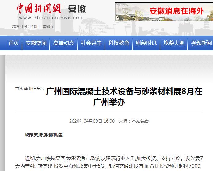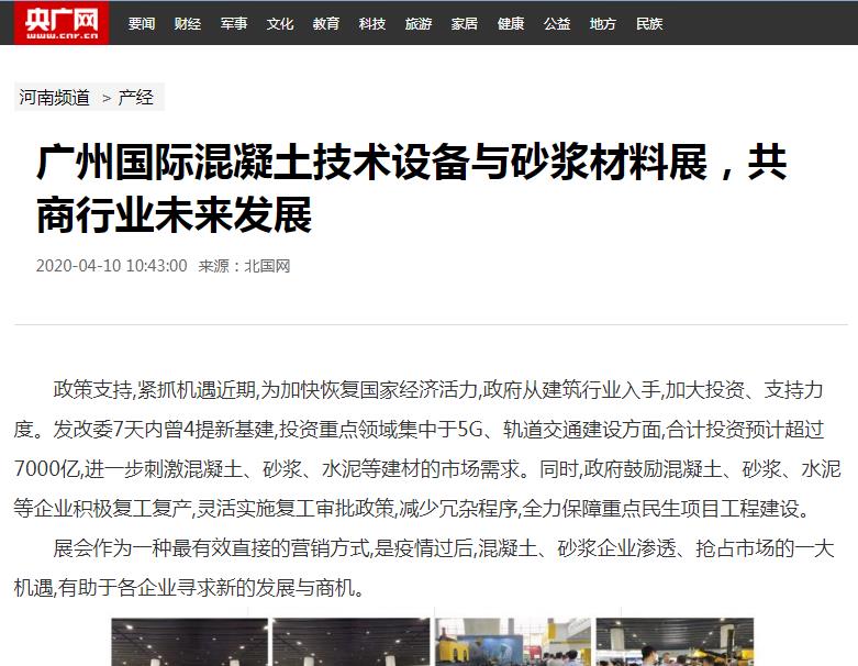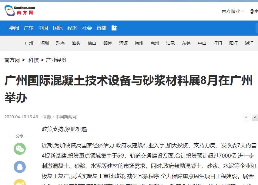 近百家知名媒體紛紛報(bào)道2020廣州國(guó)際混凝土與砂漿展
