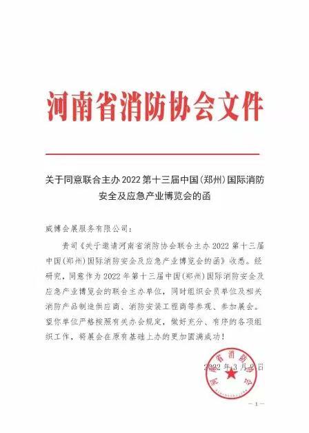 關(guān)于聯(lián)合主辦2022第13屆鄭州國際消防展的函